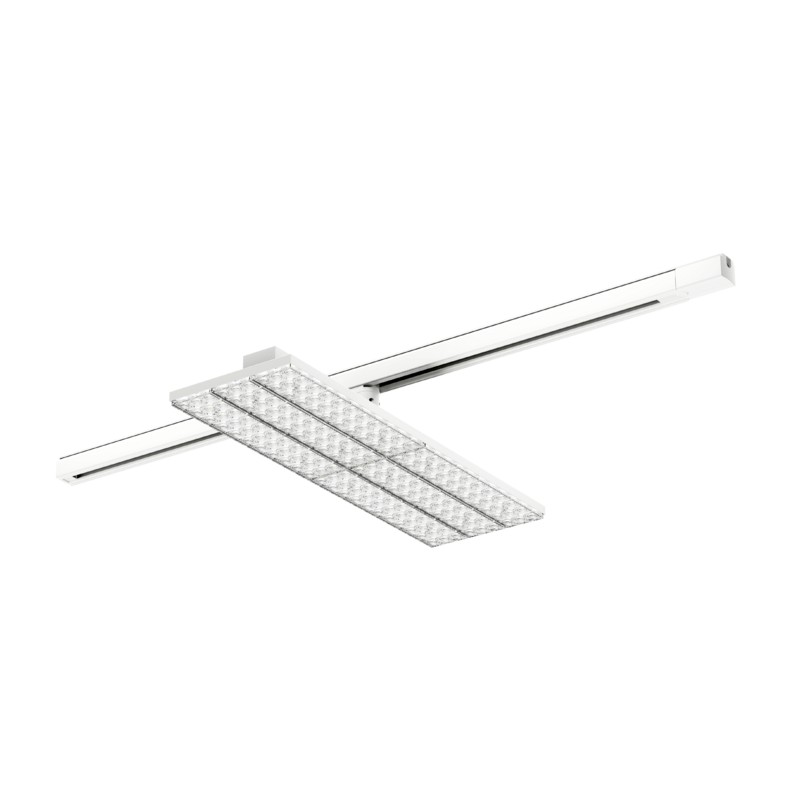 Panneau lumineux sur rail, à puissance commutable, conçu pour une installation directe sur rails trois allumages, offrant une flexibilité maximale pour les environnements tertiaires et de commerce. Il fournit une diffusion de la lumière plus large dans les zones ciblées. Adaptateur intégré triphasé, avec sélecteur de phase et de puissance. Fonction extractible permettant une orientation sur un angle de 350°. Optique brevetée dotée d'une excellent efficacité lumineuse autorise une efficacité énergétique de 180lm/W. Angle de faisceau standard de 90° ou double asymétrique DS25°x60xDS25° disponible en option. Personnalisation possible des réflecteurs en finition noire ou argentée, avec un large choix d’angles de faisceaux et de températures de couleur sur demande..